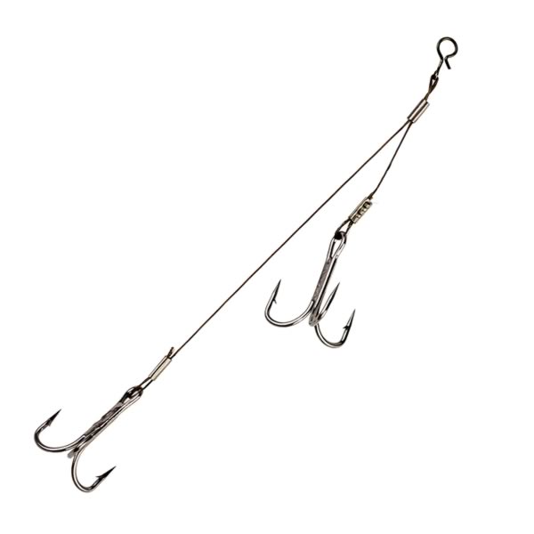 Robustes 1x19 Edelstahl-Stinger-Doppelsystem mit zwei Haken für optimalen Halt und erhöhte Fangchancen. Speziell entwickelt für größere Köder und unterschiedliche Zielfischgrößen. Das Stinger-Doppelsystem sorgt für bessere Hakpositionierung und mehr Sicherheit beim Angeln.