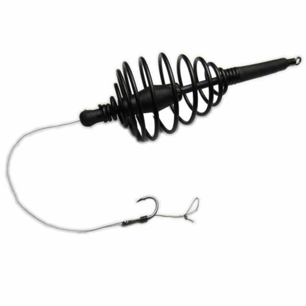 Die Spirale ist aus stabilem Draht gefertigt und lässt sich einfach mit Grundfutter oder Teigmischungen befüllen. Der Haken wird mittig im Futter platziert – so steigt die Bissfrequenz deutlich