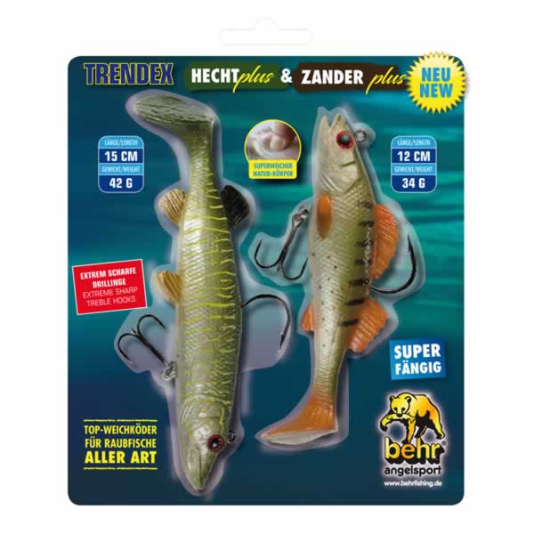 Mit diesem Doppelpack erhältst du zwei erstklassige Kunstköder, die gezielt auf Hecht und Zander abgestimmt sind. Beide Köder sind bereits vormontiert und sofort einsatzbereit, um deine Fangchancen zu maximieren!