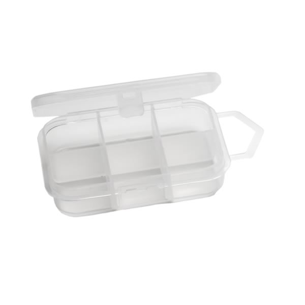 Diese kleine Zubehörbox mit 6 Einteilungen ist die perfekte Lösung für alle, die ihr Angelzubehör platzsparend und übersichtlich verstauen möchten. Mit kompakten Maßen von 9,1 x 6,6 x 2,2 cm bietet sie ausreichend Platz für Haken, Wirbel, Perlen und andere Kleinteile. Die stabile Kunststoffbox ist besonders leicht und dennoch robust – optimal für den mobilen Einsatz am Wasser. Dank des Lochwand-Einhängerings kann die Box einfach an Angelkoffern, Rucksäcken oder anderen Aufbewahrungssystemen befestigt werden. Ob für den spontanen Ansitz oder die gut organisierte Angeltour – diese Box sorgt für Ordnung und schnellen Zugriff auf das Wesentliche.