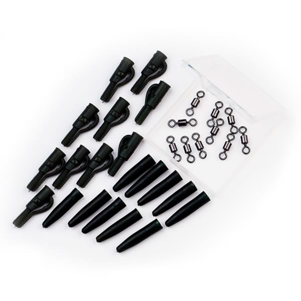 ✅ 10 Lead Clips für eine sichere Befestigung des Bleis ✅ 10 Rig Sleeves zur perfekten Tarnung und Schutz der Montage ✅ 10 Wirbel für eine reibungslose Verbindung zur Hauptschnur