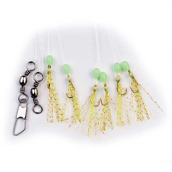 Dieses hochwertige Makrelen- und Heringssystem ist mit selbstleuchtenden Perlen und/oder Haken ausgestattet und eignet sich perfekt für das Angeln in trüben Gewässern oder bei geringer Lichtintensität. Die leuchtenden Elemente erhöhen die Sichtbarkeit des Systems und sorgen für eine besonders effektive Lockwirkung auf Makrele, Hering und andere Schwarmfische.